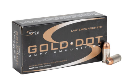 Speer Gold Dot Ammunition is loaded with bonded core bullets and designed for home defense and personal protection. Bonding the jacket to the core means the elimination of core-jacket separations and superior weight retention. This ammunition is new production, non-corrosive, in boxer primed, reloadable brass cases.