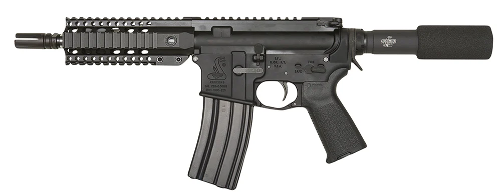 The Bushmaster Enhanced Patrolman’s AR pistols feature a 416 match-grade stainless steel barrel, Barnes Precision free-float lightweight quad rail, Magpul MOE pistol grip, and Magpul MOE, trigger guard. These AR pistols come chambered in 223 Remington/5.56 NATO and they ship with one 30 round magazine. The Bushmaster logo is engraved on the aluminum buffer tube and a Phase 5 Ambi single point sling attachment is essential for easier carry.
