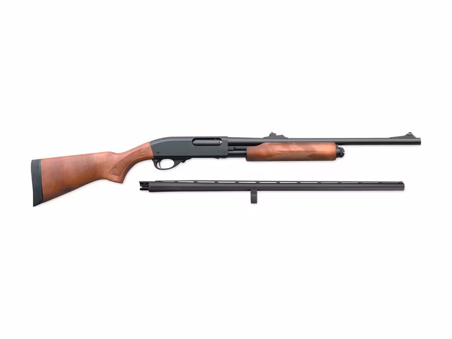 Like all Model 870 shotguns, this workhorse features a receiver milled from a solid billet of steel for maximum strength and reliability. The silky-smooth twin action bars prevent binding and twisting so you’ll always have the chance to get off a second shot. Appropriately dressed for the hunt and not for the wall, each shotgun sports non-reflective, black matte metalwork and a no-frills, satin-finish hardwood stock and forend. This 20 gauge Combo model has a 26″ vent rib barrel with a Modified Rem choke, and a 20″ fully rifled deer barrel with rifle sights.