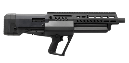 The Tavor TS12 12 gauge shotgun is a gas regulated bullpup shotgun with an innovative design that feeds from one of three (3) individual magazines which can hold four 3 inch shotgun shells or five 2 ¾ inch shotgun shells each. This means that the potential overall capacity from all three (3) individual magazines is 15 rounds plus one additional round in the chamber. The TS12 has a unique feature that automatically loads a round in the chamber once the subsequently loaded magazine is rotated into position. It can be fed and unloaded from either side.