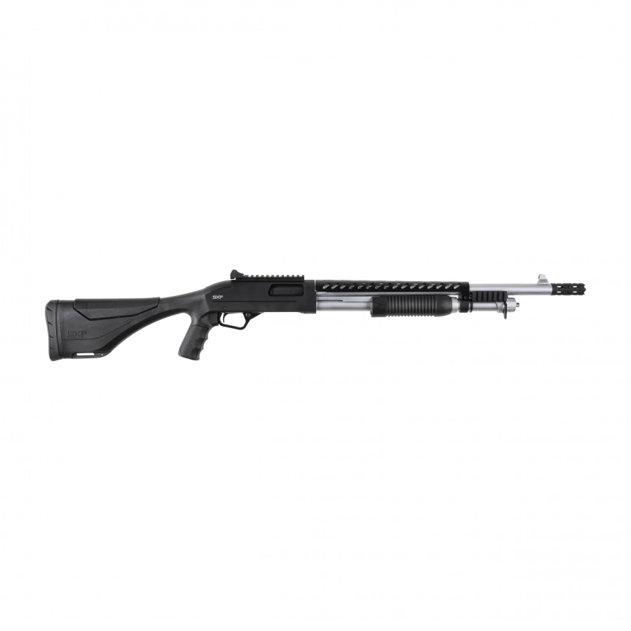 The 12 gauge Winchester Super X Pump Defender is a serious option for a home defense shotgun. It incorporates an 18″ barrel, simple bead front sight, and black synthetic furniture. Additionally, this shotgun uses inertia-assisted slide action making it the world’s fastest pump-action shotgun.