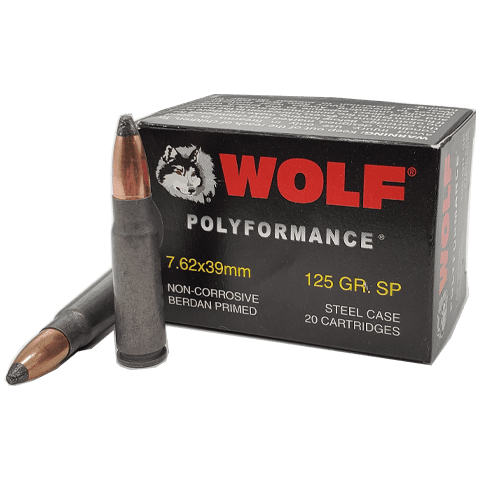 A howling success! Wolf® 7.62x39mm SP Ammo. Plinking just got more fun! Bi-metal, soft-point bullet. Berdan-primed, non-corrosive and non-reloadable.Cartridge: 7.62×39 Ammo Bullet Weight Grains: 125 Bullet Style: Soft point Muzzle Velocity (F.P.S.): 2,104 Muzzle Energy (ft.-lbs.): 1,513 Rounds: 500.